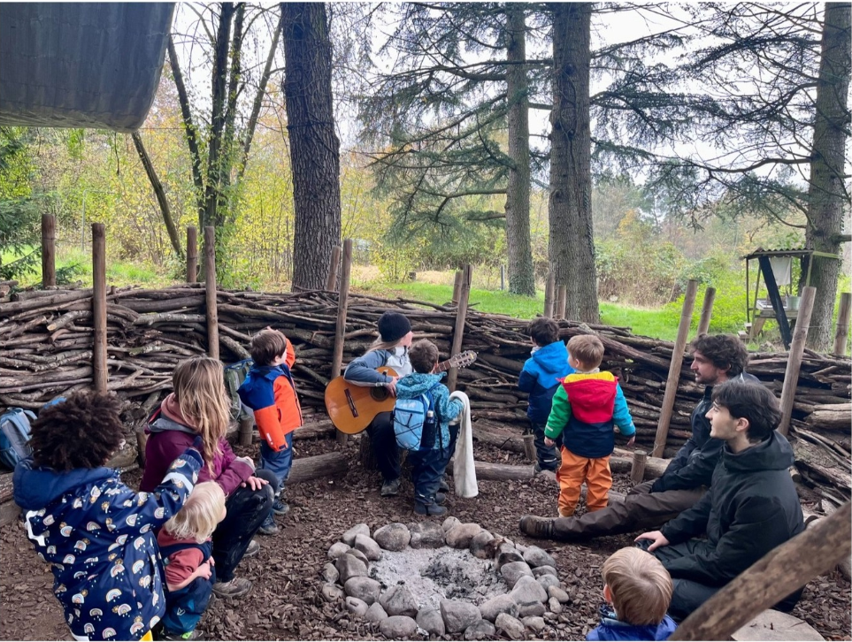 Quotidiennement, le groupe est composé de max. 16 enfants et de min. 4 adultes formant l’équipe éducative. Les enfants ainsi que les adultes s'habillent en fonction du temps, avec des vêtements techniques, imperméables et chauds.